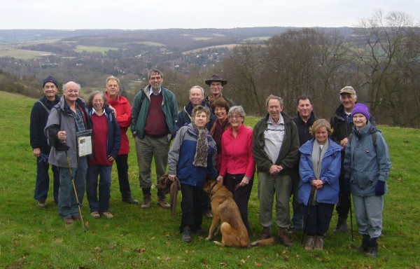 Dave Turner organised an excellent walk for a party of 15 keepfitters and partners (including recent departees John Morgan and Marika) on December 28th. The walk took us from Goring station across the Thames to Streatley, left and up the hill to Grimm's Ditch, across the road to Lough Down, down the hill to the river, and on to lunch at the excellent John Barleycorn pub in Goring. The rain held of till we all departed.