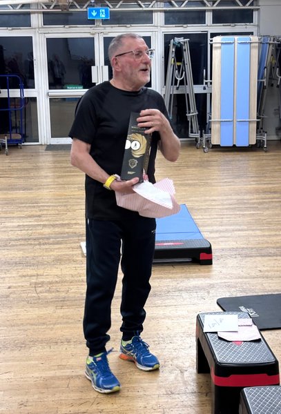 Some photos of present-giving at the Keep Fit session on March 3rd 2026, followed by (a) a short video of John's 'acceptance speech', and (b) a video of photos of John over the years with the kep fit group.